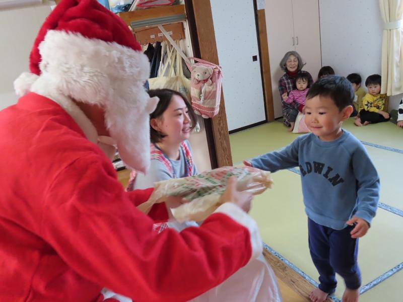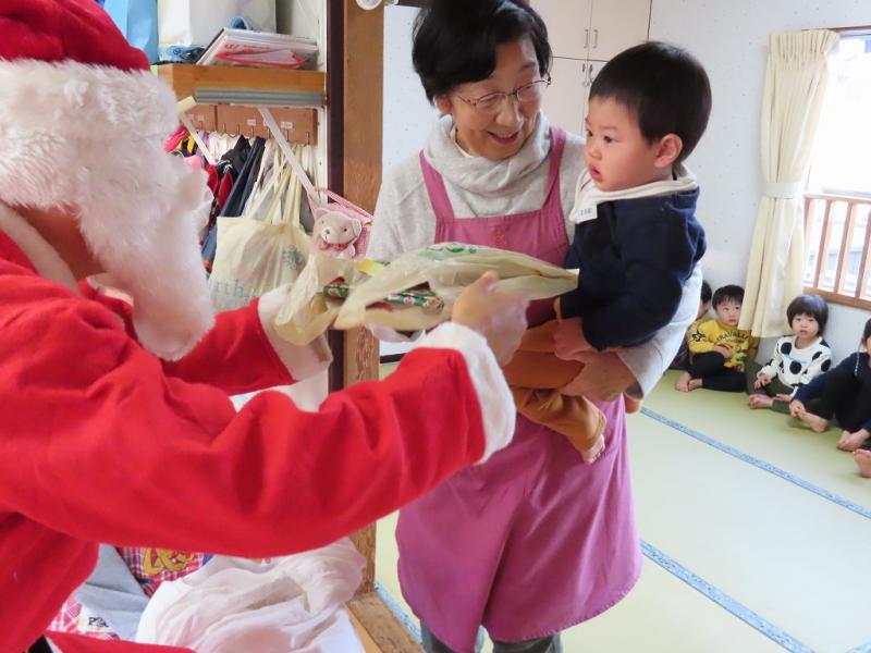 最後はサンタさんに一人ずつタッチをしてもらい、お見送りをして、いよいよおやつタイム。