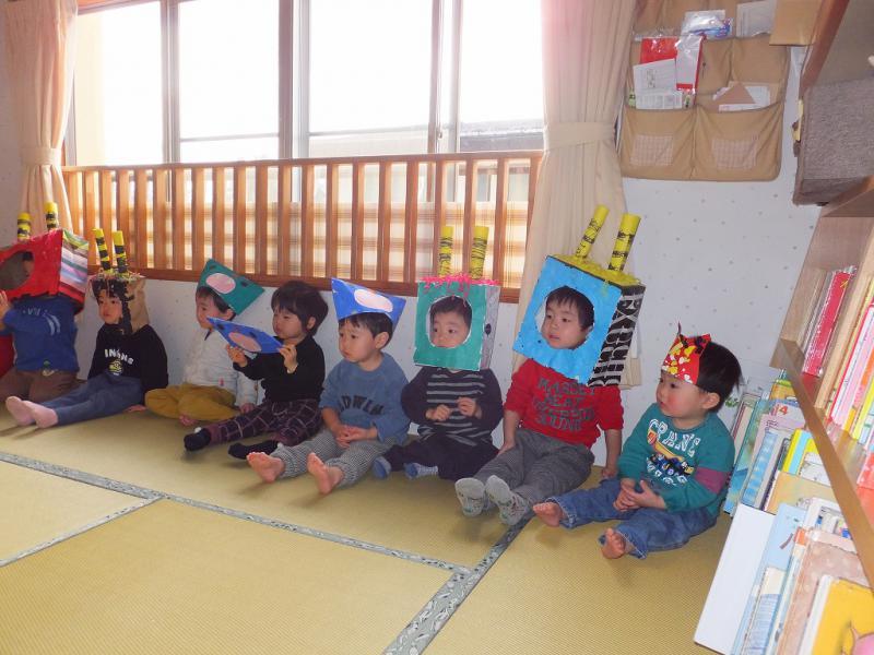 鬼のお面(かんむり、といった方が良いかな)をつくったり