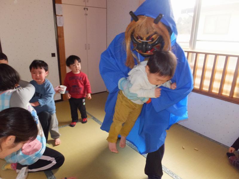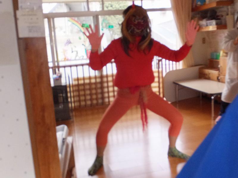 「おにはーそと、ふくはーうち」と豆をぶつけることができました。