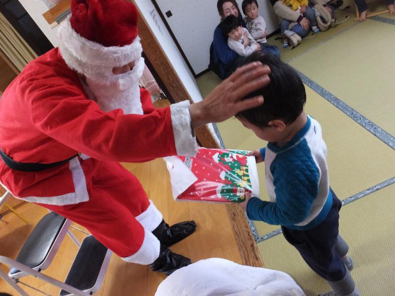 やっとやっとサンタクロースの袋が開いて、ひとりずつプレゼントをもらうことができました、が、ここでも遠慮がちで寡黙なこどもたち、試しに開けてみよう、などという子もなく、サンタクロースとのひとときは静かに過ぎていきました・・・