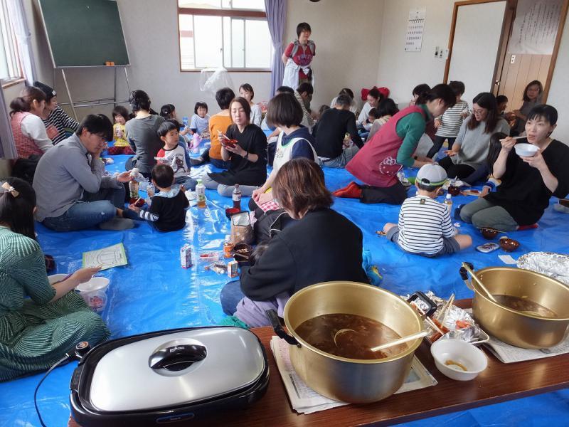 集会場の畳、大丈夫?というくらい動き回って、Mちゃんのお母さんの力作のピニャータ(メキシコの、張り子のくす玉みたいなもの)で、時ならぬ西瓜わり大会(?)もして、いよいよ「いただきまーす!」
