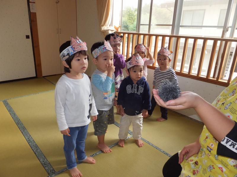 おおかみなんかこわくないよ・・・」ほんとに怖くなかったのかな、おおかみのお面をかぶっていても、ちょっぴりかたい表情の子もいたみたいだよ!おおかみって、楽しさ半分、怖さ半分、なんだよね!!