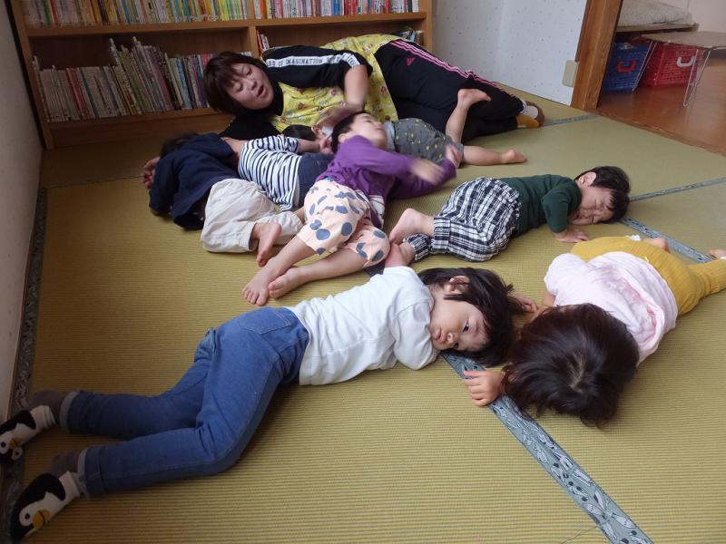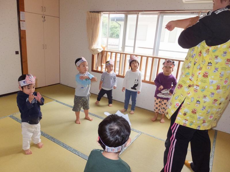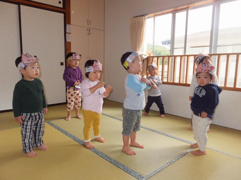 おおかみなんかこわくないよ・・・」ほんとに怖くなかったのかな、おおかみのお面をかぶっていても、ちょっぴりかたい表情の子もいたみたいだよ!おおかみって、楽しさ半分、怖さ半分、なんだよね!!