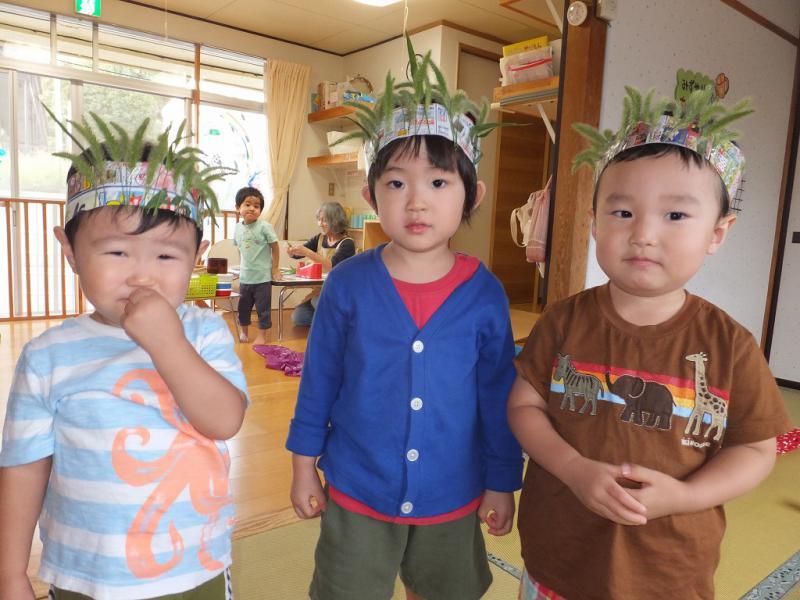 猫じゃらしをつんできて、猫じゃらしのかんむりをつくりました。「野原の王子さま、お姫様」のできあがり!頭の上で猫じゃらしがゆらゆらするのが、結構かわいかったですよ!!