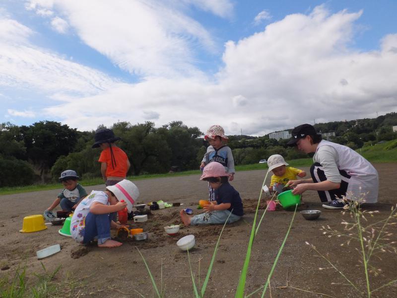久しぶりに、砂場の道具をもって、原っぱに繰り出したこどもたち、どんなに楽しかったかは、一目瞭然でしょう?