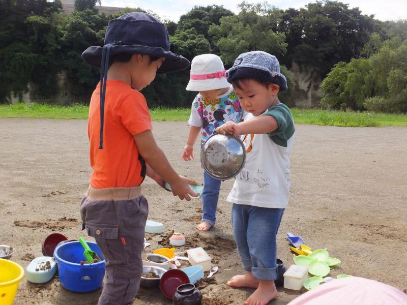 ちょうど居合わせた2歳児さん二人と一緒に、両手いっぱい