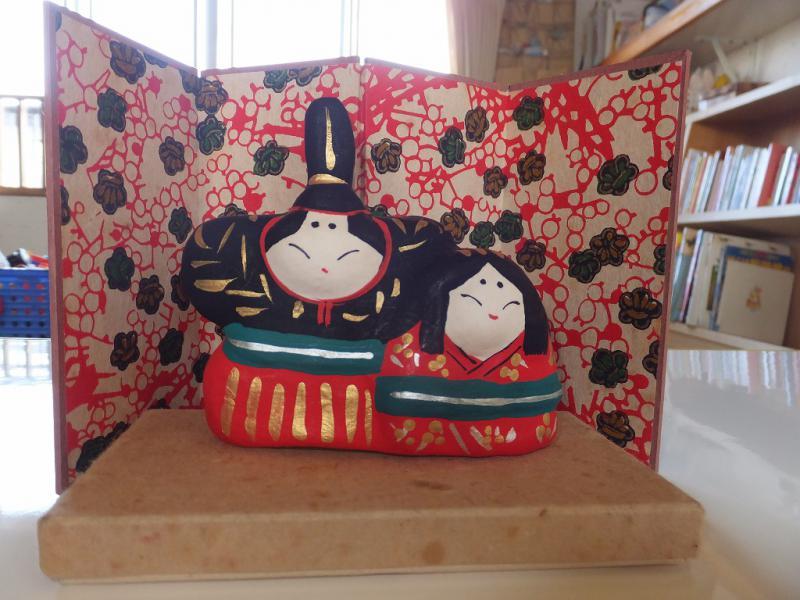 写真いろいろ・・・ことし飾ったのは落としても投げてもこわれないこのおひなさま。みんなのおひなさまや、おやつもすてきでしょ?