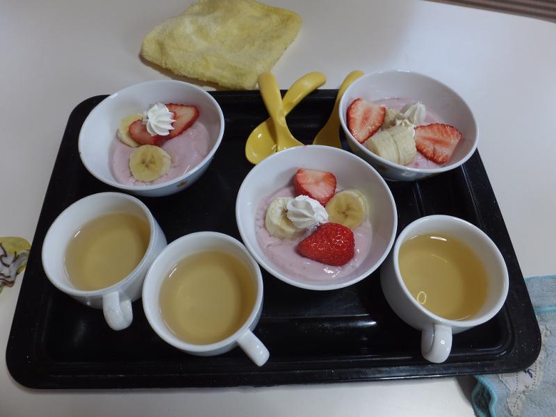 献立はイチゴのフルーチェ、フルーツ添え!
