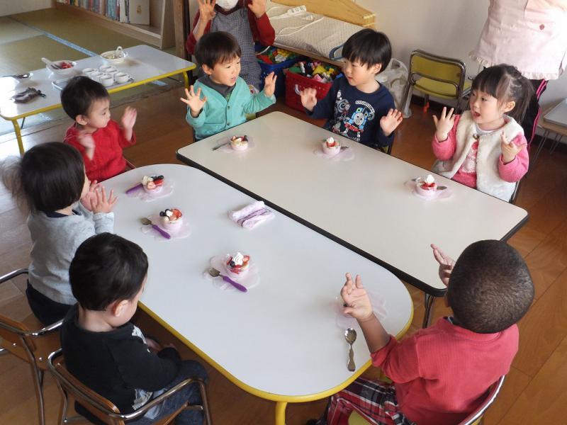 2歳児クラスのみんなが、おやつをつくってごちそうしてくれました。