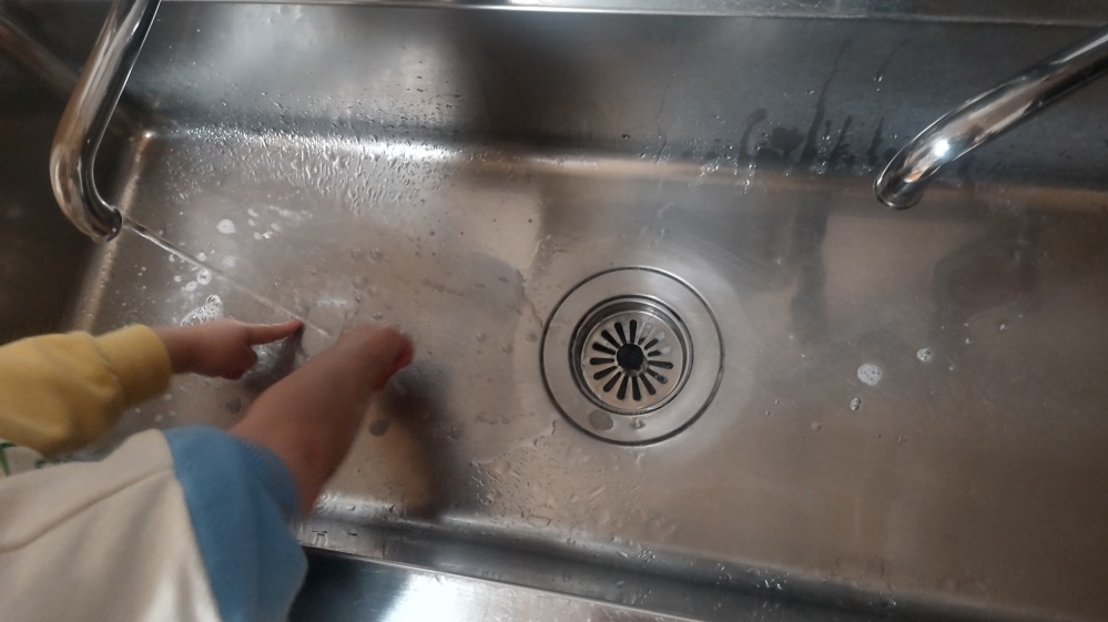 「めっ!ごしごし!!」と言いながら 水道を止められてしまいました