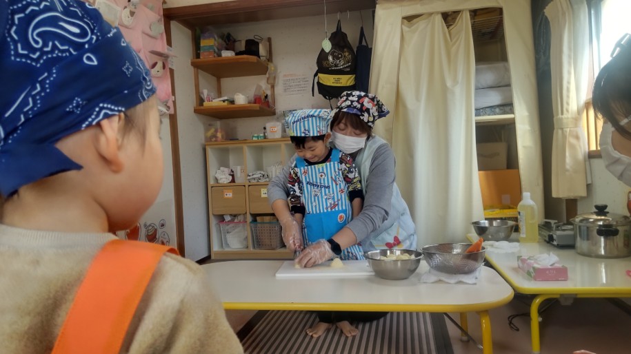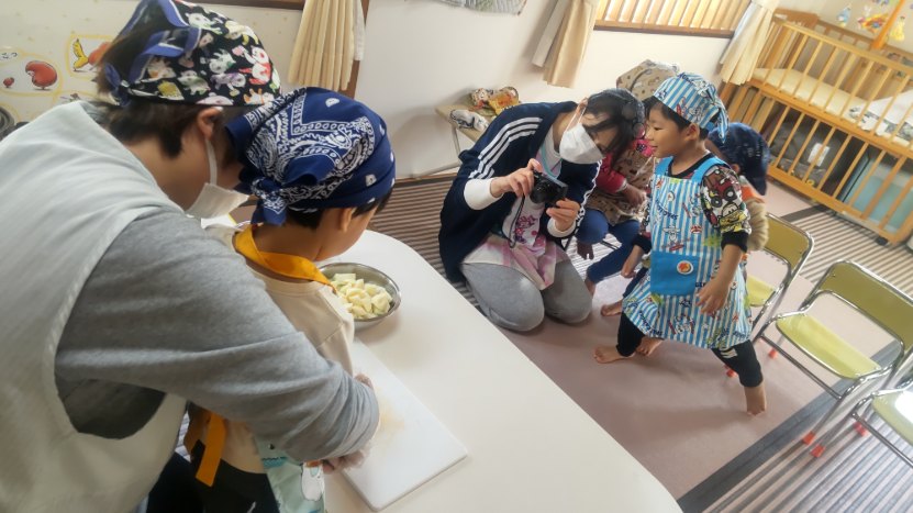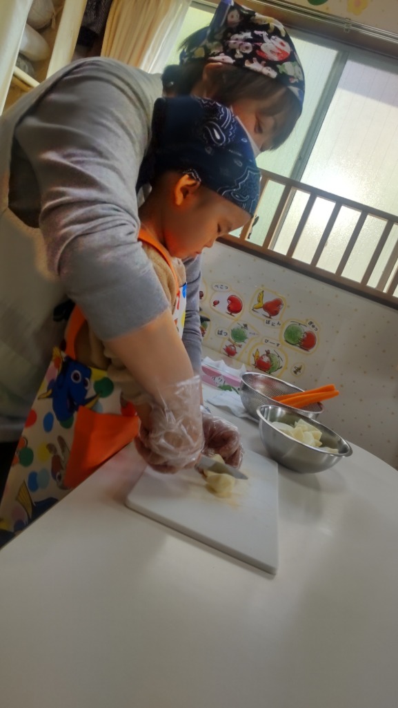 洗ったり 皮をむいたりの 下準備は 職員たちが ある程度やりましたが