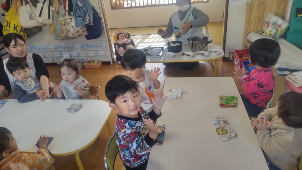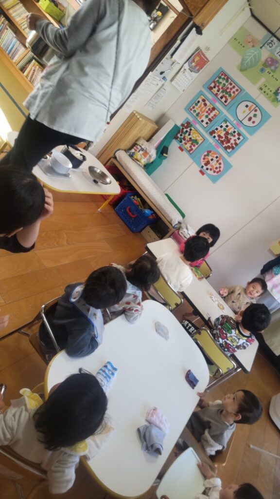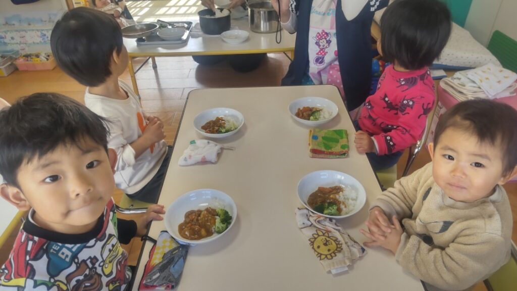 たんぽぽ組さんも ちゅーりっぷ組さんも にこにこ ぱくぱく 食べてくれました