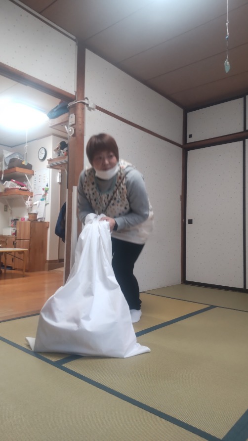 「お餅つき」のお手玉を 一人ずつに手渡していただいて