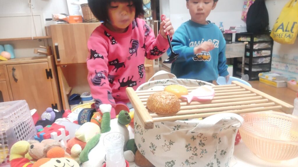 誰かと 分かち合って よろこびを 何倍にも膨らませたくなってきたりします(「ねえみてみて~」と 言いたくて お迎えの時間まで ならべたものを そのままにしておきたい!とかね)