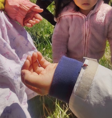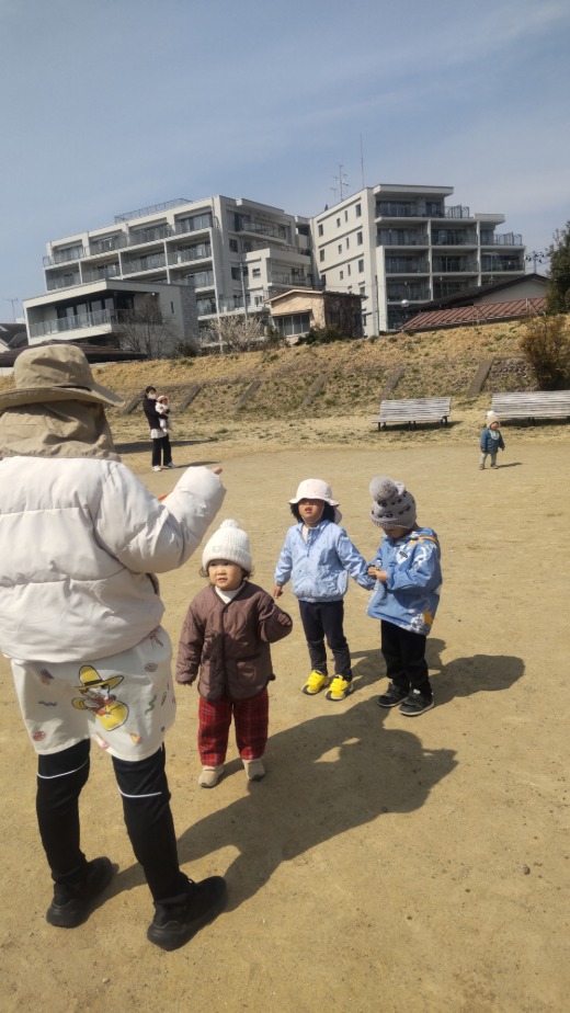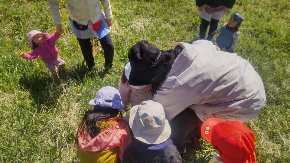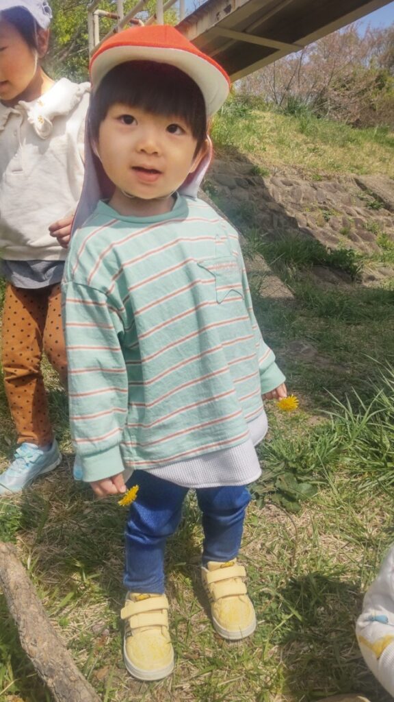 お散歩に行く前に、みんなで集まっておひさま原っぱ保育園のお友だちや先生たちの紹介をしました!まり先生が「〇〇ちゃんで~す!」「〇〇くんで~す!」と紹介するたびに“パチパチパチパチ~”っと拍手👏が巻き起こり、みんなニコニコでした♬