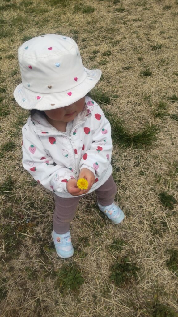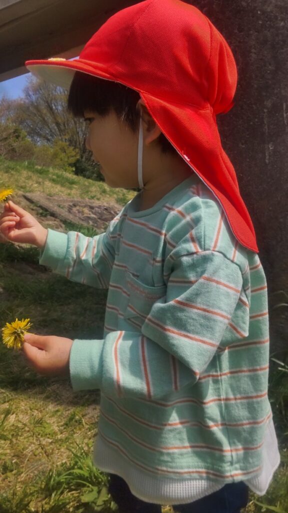 たんぽぽの おはなを みつけてうれしくて