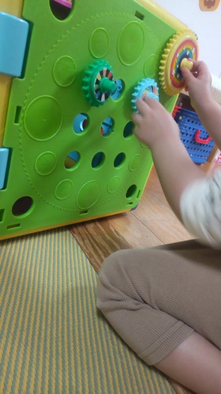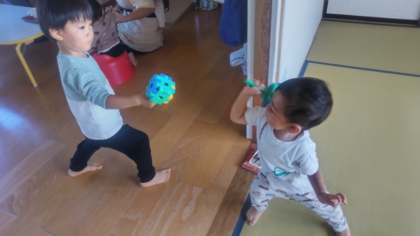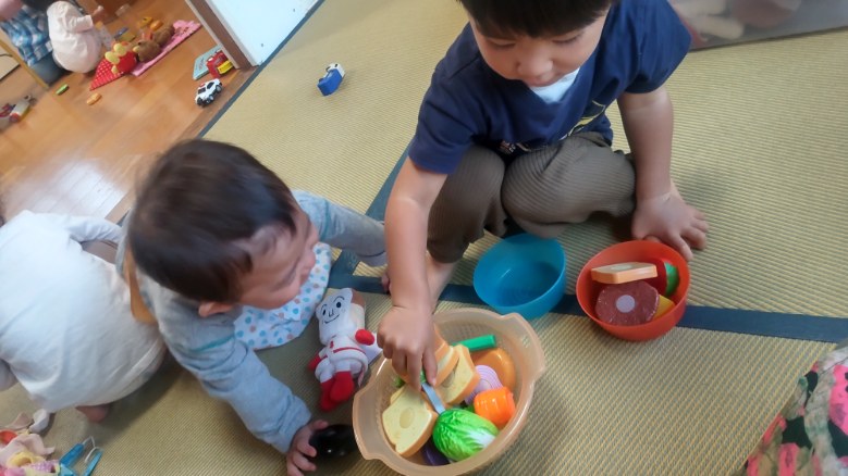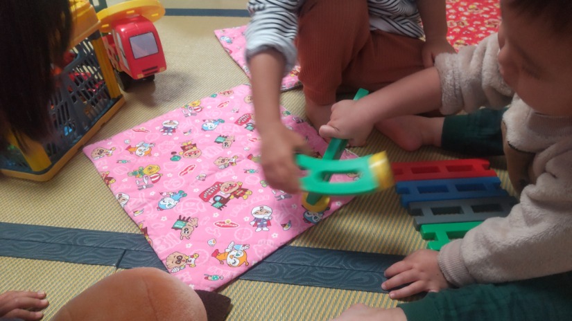その楽しかった思いを反芻しているのだろうなあと うれしくなります(画像は 色違いのブロックを並べて 色を 塗り分けるようにして あそんでいましたよ)