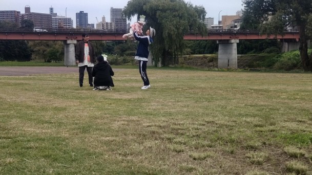 さくら組 Iさんのところへ にじり寄る たんぽぽ組 Hさん