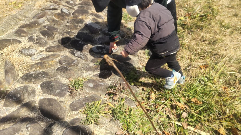 胡桃の殻を 拾って 投げたり