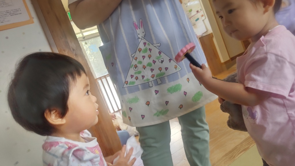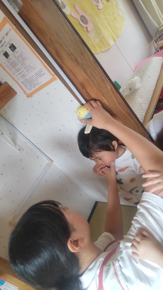さとみせんせいが 製作の端材(ピンクの色画用紙)をくれたので